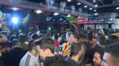 El Gobierno ha prohibido reuniones de más de 1.000 personas, pero la afición del Valencia no faltó a su cita con el equipo antes del partido de Champions League contra el Atalanta.