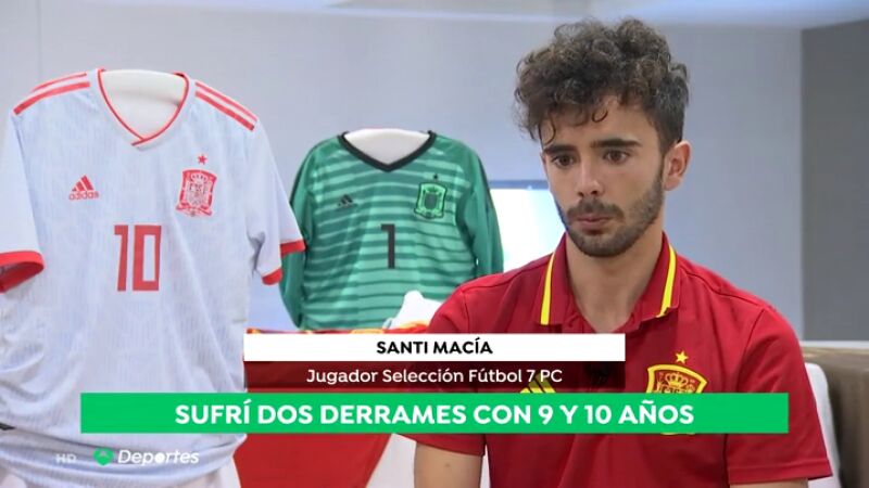 "Con nueve añitos tuve el primer sangrado, un derrame cerebral y el segundo derrame con diez", relata Santi Macía, uno de los jugadores que forma parte de la Selección de Fútbol 7 con parálisis cerebral que ha disputado el Mundial celebrado en Sevilla.