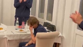 Los internacionales croatas le dedicaron un fuerte aplauso y le sirvieron una tarta mientras el futbolista blanco se tapaba la cara para ocultar sus lágrimas. Emocionado el croata después de aumentar su leyenda en el país.