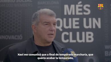 El club catalán ha publicado un vídeo en sus redes sociales del presidente analizando la decisión de Xavi: "Me comunicó que a final de temporada se iría, que quería acabar la temporada, y es una fórmula que acepto porque es él quien me la propone: es una leyenda del barcelonismo. Es una persona honesta y actúa con toda dignidad. Lo acepto porque sé que su compromiso será máximo", empezó diciendo ante la televisión del equipo.