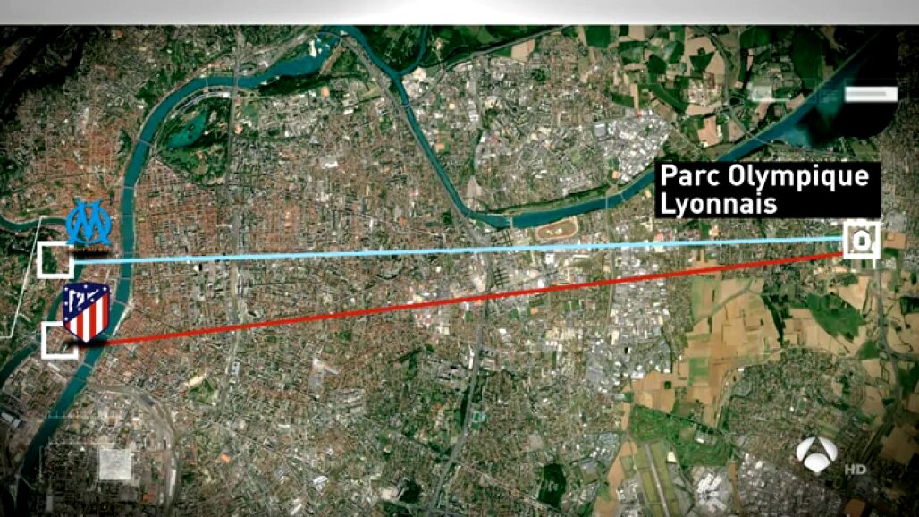 Las aficiones de Atlético y Marsella, separadas por menos de dos kilómetros