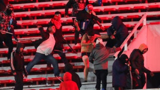 Fue entonces cuando los hinchas locales intentaron acercarse al sector visitante, lo que llevó a reforzar la seguridad con personal de infantería, al mismo tiempo que se iniciaba la evacuación del público chileno. Sin embargo, pese a los esfuerzos por contener la situación, un importante grupo de simpatizantes de Independiente logró llegar a la tribuna donde todavía permanecían algunos aficionados del equipo chileno, quienes fueron agredidos de forma violenta.