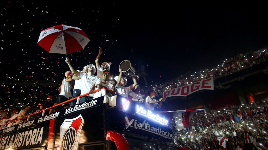 La vuelta olímpica en el autobus sin techo y una fiesta de fuegos artificiales marcó el final de una auténtica fiesta de fin de año que le permitió a River celebrar su cuarta conquista de América, retrasada por su participación en el Mundial de Clubes, donde fue tercero tras caer con el local Al Ain por penaltis y derrotar luego al Kashima Antlers por 4-1.
