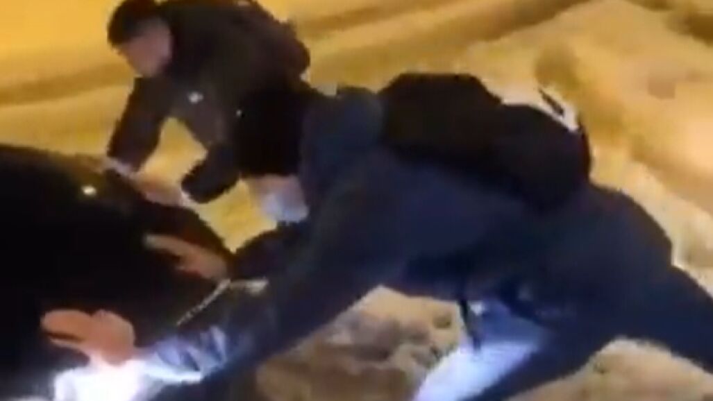 Los jugadores del Getafe terminan sacando de la nieve al coche que les envió LaLiga para llevarles al aeropuerto