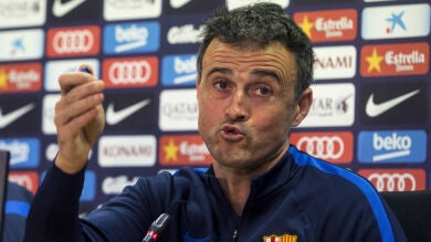 El entrenador del Barcelona, Luis Enrique Martínez, se ha mostrado cauto con vistas al futuro y ha apostado por quedarse con "una versión más recatada" de la euforia, al afirmar que "hace tres semanas esto (el entorno) era un velatorio y ahora parece todo lo contrario".