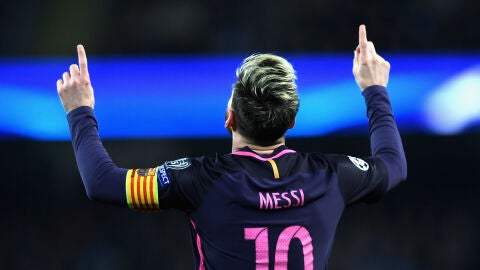 Leo Messi celebra su gol al CityGetty images