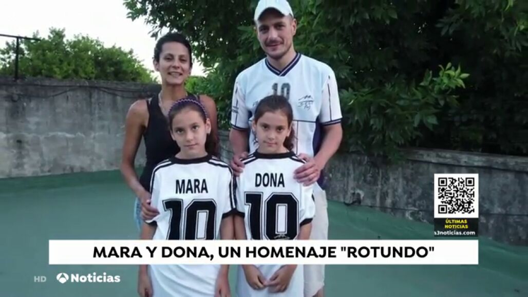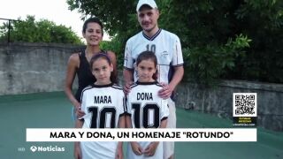 La familia 'Rotundo' quiere mantener vivo el recuerdo y especialmente el apellido de Maradona. En este núcleo familiar nos llama la atención dos gemelas de nueve años, 'Mara' y 'Dona', cuyo padre, Walter, venera a Maradona desde joven.