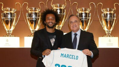 Con 415 partidos disputados y cinco temporadas por delante para alcanzar los 527 de su ídolo Roberto Carlos, Marcelo compareció radiante ante los medios de comunicación en el Santiago Bernabéu tras firmar con el presidente Florentino Pérez su ampliación de contrato con mejora económica.