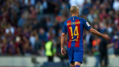 El jugador del FC Barcelona Javier Mascherano es duda para recibir al Eibar en el Camp Nou en la última jornada de LaLiga, con el título en juego en pugna con el Real Madrid, debido a una pequeña lesión muscular que se produjo durante el calentamiento previo al choque del domingo frente a la UD Las Palmas.