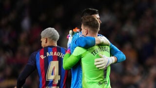 "Siento la lesión, Ter Stegen. Me dolió mucho verte salir así del campo. Espero que puedas recuperarte pronto y volvamos a verte en la portería", escribió Courtois en cu cuenta de 'X' junto a una foto en la que se abraza al portero del Barcelona tras la disputa de un clásico.