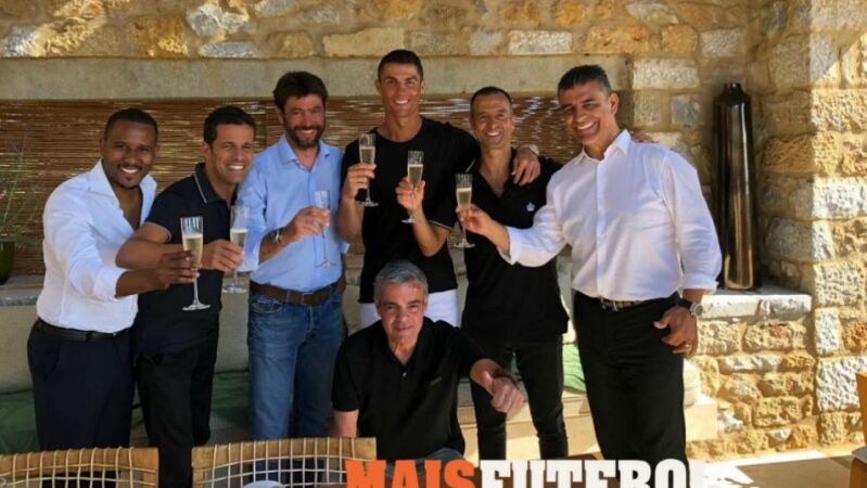 Cristiano Ronaldo brinda con Agnelli y Mendes tras su traspaso a la Juventus