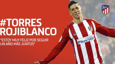 El Atlético de Madrid ha confirmado la renovación de Fernando Torrespor una temporada más, hasta el 30 de junio de 2018.