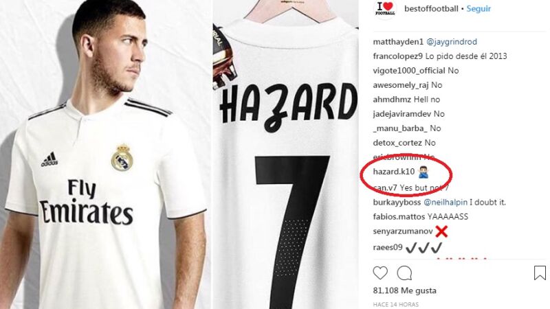 Y es que la cuenta Best of football publicó una imagen de la estrella del Chelsea con la camiseta del Real Madrid y la siguiente pregunta: "¿Crees que sería el movimiento correcto para Hazard?"