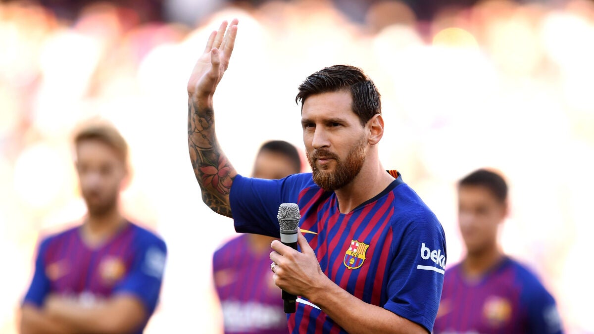 Antes del discurso del '10', fue el entrenador del Barcelona, Ernesto Valverde, quien se dirigió a los aficionados tras la presentación, uno a uno, sobre el césped del estadio, de jugadores y cuerpo técnico.
