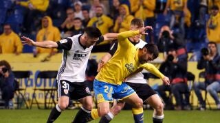Las Palmas y Valencia igualaron en el primer encuentro de su eliminatoria de octavos de final con un tiempo para cada equipo, el primero para el cuadro isleño, aprovechando el efecto de la llegada de su nuevo entrenador, y el segundo de un Valencia que encontró el empate a poco del final.