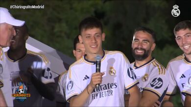 "He fumado el puro, he bailando con Eduardo [Camavinga]... y ahora quiero una cosa: os voy a presentar a un chico muy interesante", comenzó en Cibeles Carlo Ancelotti, quien sacó de nuevo a pasear su lado más showman durante la celebración de la Decimoquinta Copa de Europa. El técnico italiano presentó así en sociedad al talento turco Arda Güler: "Arda, es muy tímido. Adelante, niño", bromeaba mientras le daba el micrófono al joven turco.