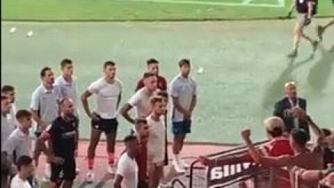 Monchi también mandó salir a los jugadores del Sevilla. Ahí aguantaron, plantados, frente a unos 560 aficionados que protestaban y a los que ellos también tuvieron que pedir perdón.