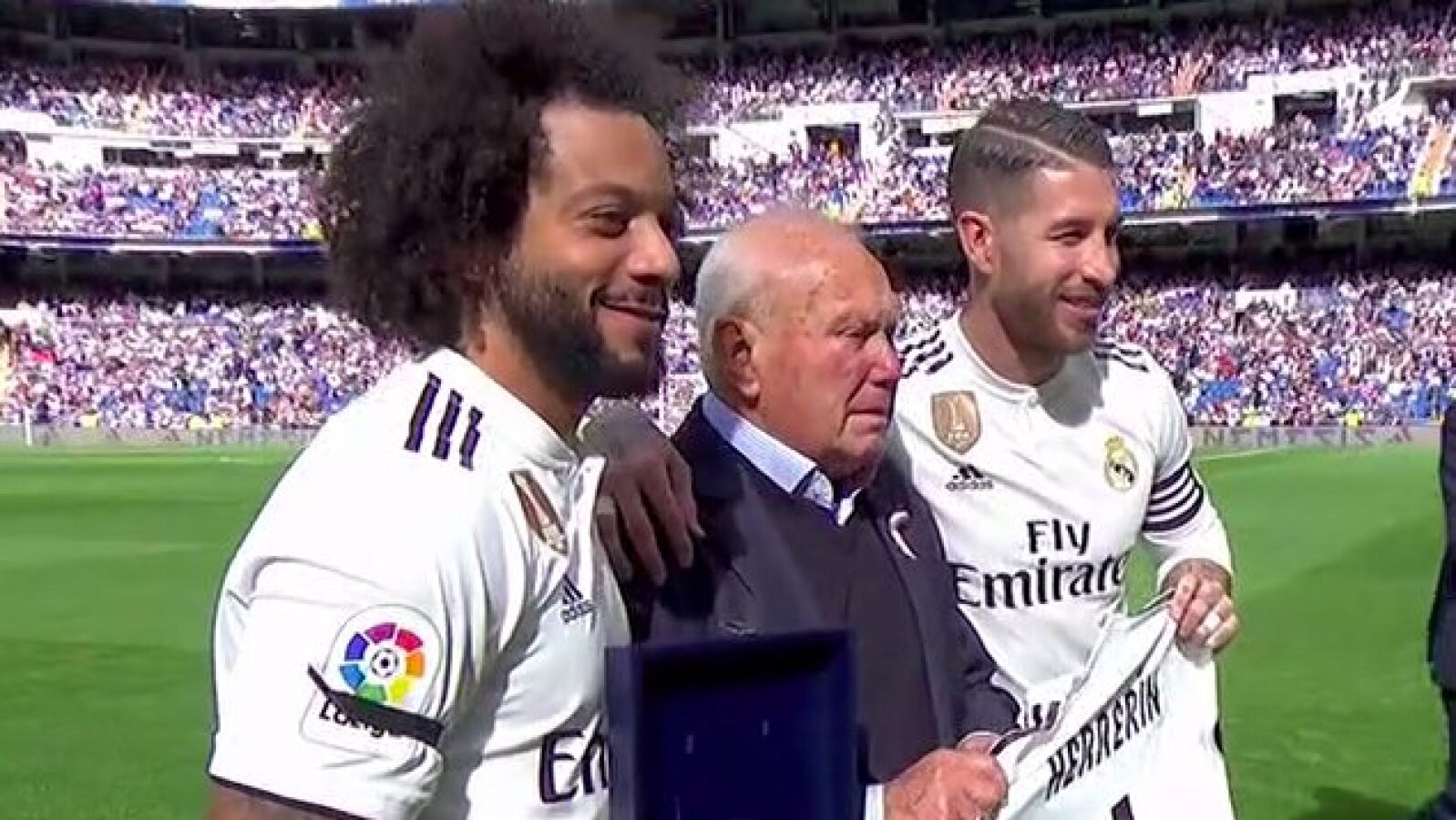 Herrerín recibió un homenaje el 20 de octubre de 2018, recibiendo una réplica del estadio Santiago Bernabéu y la ovación de la afición.