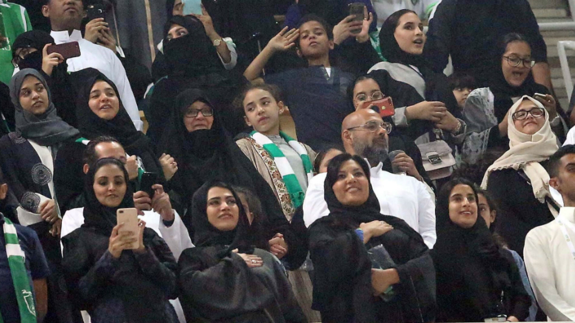 Cientos de mujeres saudíes asistieron al primer partido entre dos equipos del país del Golfo sin estar en el país y las televisiones saudíes, que transmitieron estos partidos, se concentraron más en las gradas donde se encontraban las mujeres que en el campo.