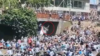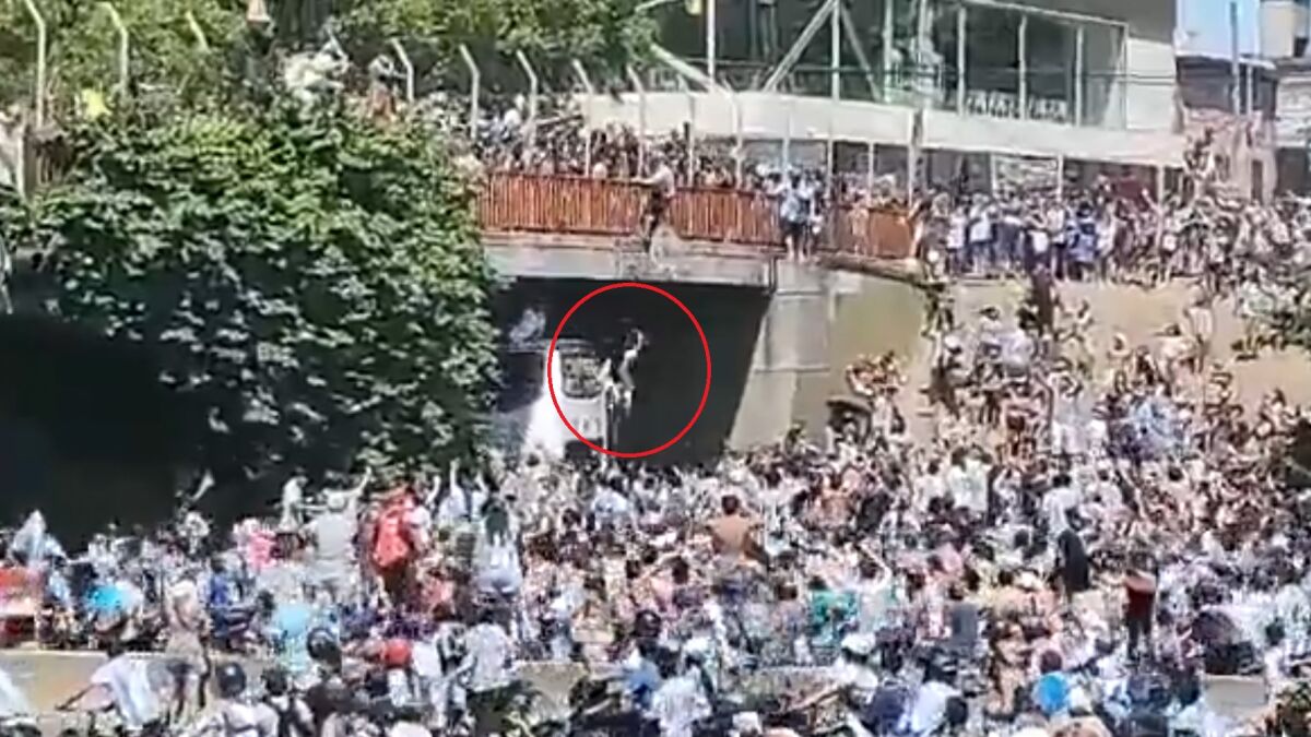 La rúa de la selección argentina por las calles de Buenos Aires vivió un momento peligrosísimo cuando dos aficionados saltaron desde un puente sobre el autobús en el que iban los jugadores. Uno de los aficionados está herido grave.