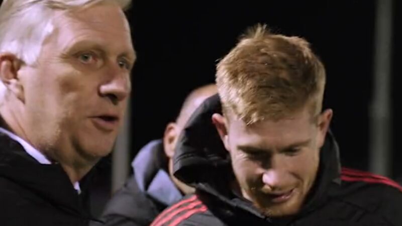 Felipe de Bélgica no duda en dar órdenes a los futbolistas, llegando incluso a llamar a Kevin de Bruyne a a banda para que se acerque y poder darle instrucciones. "Según mis notas, tienes que estar allí", le dice después de que el centrocampista del Manchester City le pregunte qué hacer.