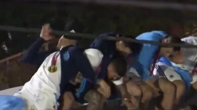 La 'Scaloneta' ya está en Argentina, donde llegó la madrugada de este martes después de coronarse campeona del mundo en Qatar. Una multitud de decenas de miles de personas esperó al equipo para acompañar a su autobús en el trayecto que va desde el aeropuerto de Ezeiza hasta el predio que la AFA tiene en esa misma localidad bonaerense. En ese momento, un grupo de jugadores tuvo un susto de muerto: Messi, Di María, De Paul, Paredes y Otamendi rozaron con sus cabezas unos cables que estaban a baja altura. Pasaron tan cerca que hasta Leandro Paredes perdió su gorra.