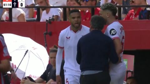 Ocampos evitó que la cosa fuera a más y se interpuso entre ambos. Marcao se levantaba del banquillo y se llevaba a En Nesyri, mientras Ocampos trataba de calmar a Sánchez Flores.