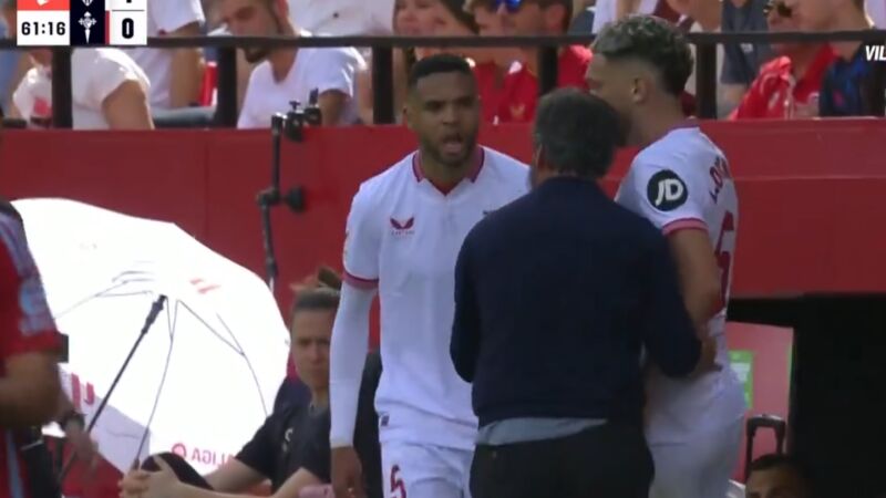Imagen tremenda la que se ha vivido este domingo en el Sánchez Pizjuán durante el Sevilla 1-2 Celta de Vigo. Pasada la hora de partido, Quique Sánchez Flores decidía sustituir a Youssef En-Nesyri, con 1-0 a favor del Sevilla en el marcador. El delantero marroquí abandonaba el terreno de juego visiblemente enfadado y, al llegar al área técnica del Sevilla, golpeaba de forma brutal una nevera móvil. El entrenador del Sevilla recriminó su actitud al jugador y éste se fue a por su entrenador en una imagen increíble.