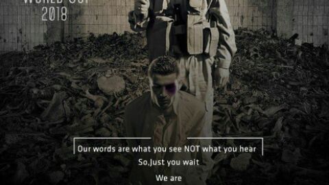 En el cartel se puede leer el siguiente texto: "Nuestras palabras son lo que ves, no lo que oyes. Así que simplemente espera. Nosotros también estamos esperando..."
