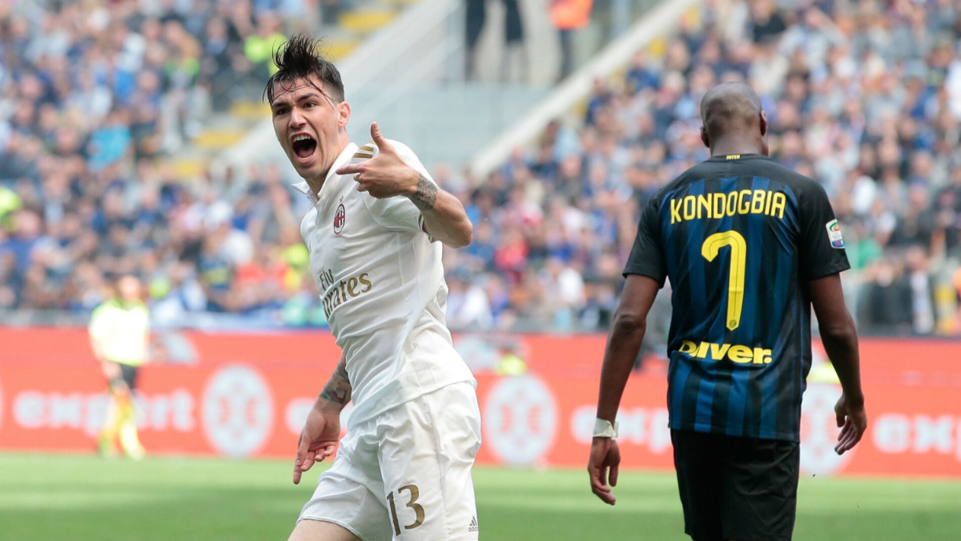 Los 'rossoneri' terminaron el partido con hasta cinco jugadores ofensivos, con el argentino Lucas Ocampos y Gianluca Lapadula que se sumaron al tridente, y lograron el 2-2 en el último instante. En una acción originada en un saque de esquina, Cristian Zapata logró empatar con un disparo que superó la línea de gol por pocos centímetros tras impactar en el larguero. El Inter protestó por la decisión pero la Tecnología de Línea de Gol (GLT) demostró que el balón había entrado completamente.
