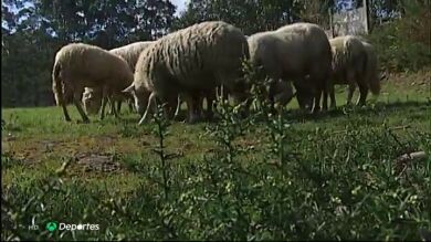 Doce ovejas, el sostenible método para limpiar un campo de fútbol en la localidad gallega de Porto do Son