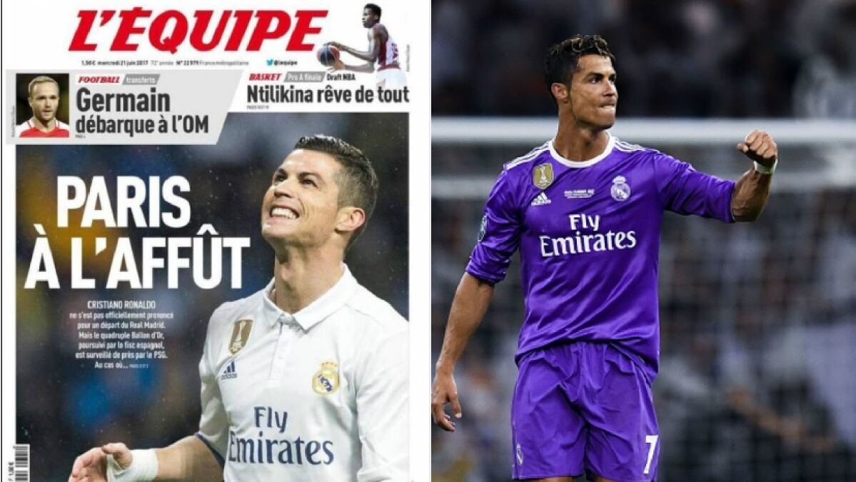 El diario francés L'Equipe amanece con una portada en la que Cristiano es el protagonista y bajo el titular 'París, al acecho'. Según este medio galo, el PSG estaría dispuesto a tratar de fichar a Cristiano Ronaldo aunque según apunta no llegaría a una cantidad tan alta como esperaría el Real Madrid.