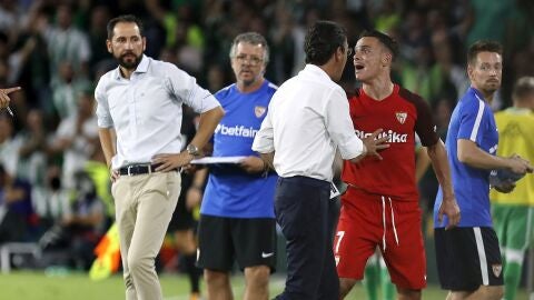 El portero del Real Betis Pau López habló a su llegada a la concentración de la selección española sobre la acción que marcó el derbi sevillano, cuando chocó con Roque Mesa al sacar de puerta y su rival fue expulsado, y dijo que el jugador del Sevilla se puso "en medio".