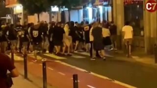 Pelea entre los ultras del Rayo Vallecano y de la UD Las Palmas antes del partido