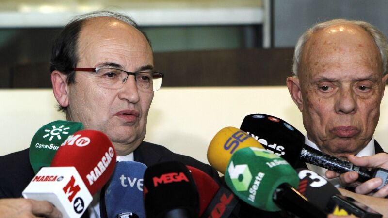 El mandatario sevillista anunció la fecha de la final copera junto al director de Relaciones Institucionales del Barcelona, Guillermo Amor, y el presidente de la Federación Interinsular de Fútbol de Las Palmas, Antonio Suárez, que coordina las finales de torneos organizados por la RFEF.