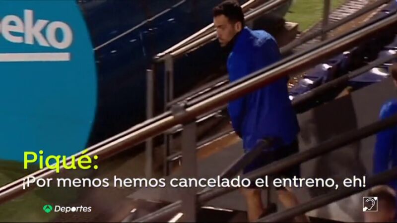 "¡Por menos hemos cancelado algún entreno!", bromeó Gerard Piqué cuando saltó al césped para participar en el calentamiento.