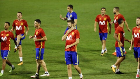 Sin embargo, en apenas unos segundos la grada se olvidó de Piqué para centrarse en aplaudir y corear las acciones de los jugadores españoles, divididos en dos grandes rondos en el centro del campo.