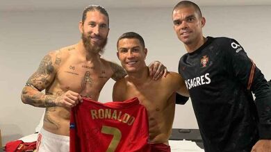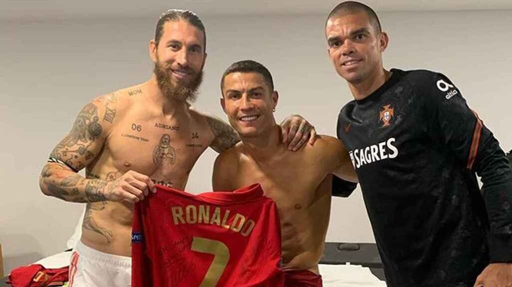 Tras ese partido, Cristiano se hizo una foto con Pepe y Sergio Ramos. Los especialistas insisten en que los vestuarios deportivos se deben usar con aforos muy reducidos, pero los tres excompañeros del Real Madrid compartieron una foto que tuvo millones de impactos.