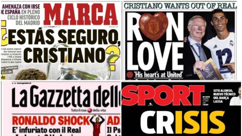 Cristiano Ronaldo, que querría marcharse por sentirse maltratado tras la denuncia de la Fiscalía por un presunto fraude fiscal de cerca de 15 millones de euros (14,7). Estos son los titulares de las principales portadas del mundo: