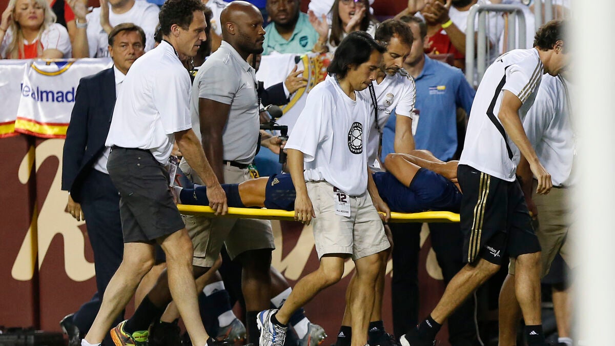 El jugador del Real Madrid salió en ambulancia del estadio FedExField de Washington con ostensibles gestos de dolor de la rodilla izquierda. "Ojalá que no, pero sí estamos preocupados. Es la rodilla, se ha ido directamente al hospital a hacer pruebas. Tiene mala pinta", aseveró Zinedine Zidane