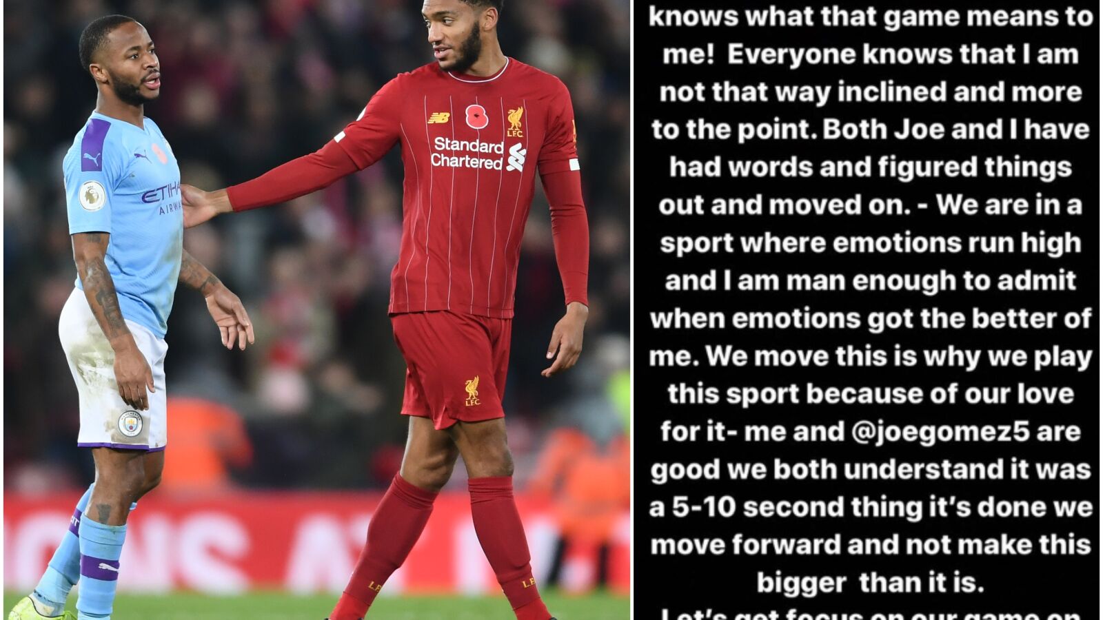 El jugador ha querido manifestarse a través de su cuenta oficial de Instagram explicando lo importante que es para él jugar dicho partido y asegurando que su forma de ser no es así. "Joe y yo tuvimos unas palabras, aclaramos las cosas y seguimos adelante. Estamos en un deporte donde las emociones son altas y soy suficientemente hombre para admitir cuándo las emociones me superan. Jugamos a este deporte por nuestro amor a él", ha publicado.
