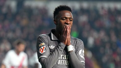 Vinícius, que fue suplente en Vallecas, protestó de forma airada al colegiado Juan Martínez Munuera. En el minuto 74, cuando el Real Madrid lanzaba un contragolpe con empate a tres tantos en el marcador, Vini fue agarrado con insistencia por Florian Lejeune en el centro del campo.