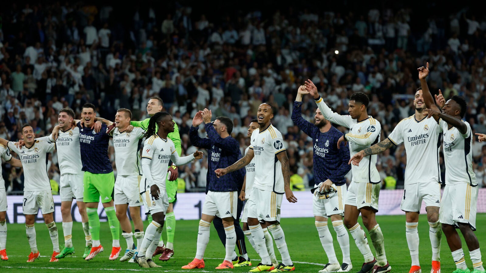 Antes, durante y después Vinicius, incisivo pero impreciso, las falló de todos los colores, perdonó el Madrid lo imperdonable pero pese a todo se respiraba un ambiente de remontada, de que la historia tenía que acabar bien porque la mayoría de veces así lo es para la entidad madridista. Así fue una vez más, empató Lucas Vázquez con una medio volea como si no costara, parecida a la de Valverde en la ida ante el City, jugadores que se crecen en los momentos en los que la mayoría se encogen. Al gallego el apodo de 'Cafucas' le gusta... y se lo cree. La que lio el gallego en la tanda del Etihad es para recordar, tocado por una varita mágica en la semana de las semanas para los capitalinos. Minuto 73. Empate.