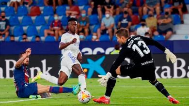 El Levante y el Real Madrid se han repartido los puntos en el Ciutat de Valencia en un partido espectacular que seguro que será uno de los mejores del año. Vinicius anotó un doblete y Campaña un golazo.