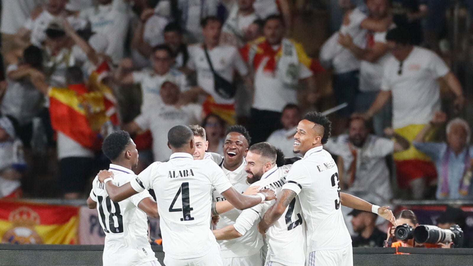Pues solo echamos de menos a Modric en el once blanco. Camavinga vuelve a actuar como lateral izquierdo y en el medio entra Tchouaméni en el lugar de Luka. Kroos y Valverde completan la sala de máquinas y arriba Vinicius, Rodrygo y Benzema.