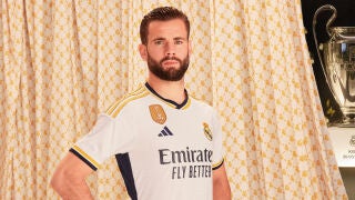 El Real Madrid ha presentado este miércoles su nueva camiseta para la temporada 2023-24. Como siempre, el color blanco es el predominante, pero con las franjas de los hombros en coloro dorado, mientras que "en los detalles del cuello en V y en las mangas se combina con el azul navy y el dorado".