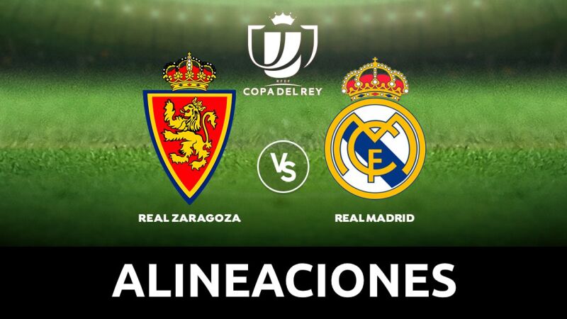 Alineaciones oficiales del Zaragoza y el Real Madrid en el partido de la Copa del Rey