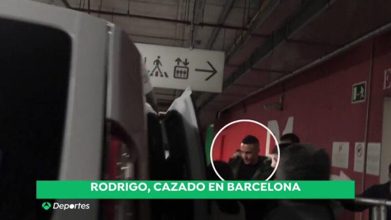 El delantero del Valencia Rodrigo Moreno fue pillado por las cámaras de Antena 3 Deportes saliendo de un examen médico en Barcelona. Su fichaje por el Barça podría ser cuestión de horas.
