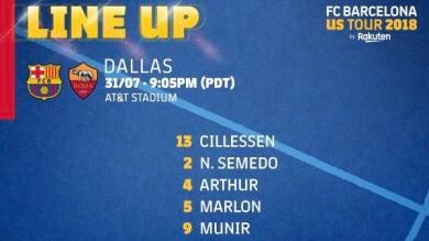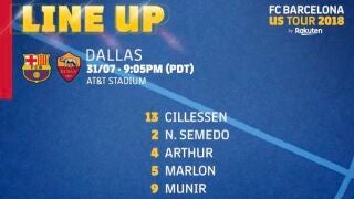 This is how our opponents FC Barcelona will line up tonight against #ASRoma in the @IntChampionsCup at the @ATTStadium in Dallas pic.twitter.com/ommJHt0wVs