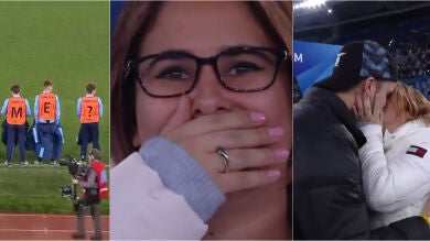 La mujer se emociona en la grada para acto seguido bajar a la pista de atletismo que rodea el Estadio Olímpico para ver como su pareja, hincando rodilla, le pide matrimonio. Como se puede imaginar, la respuesta fue afirmativa.